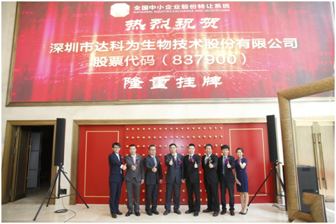 今天,達(dá)科為股票(代碼: 837900)正式登陸新三板,在萬(wàn)眾矚目下,我們一起期待公司在生物行業(yè)中轟轟烈烈的新征程!同事們,我們一起加油!